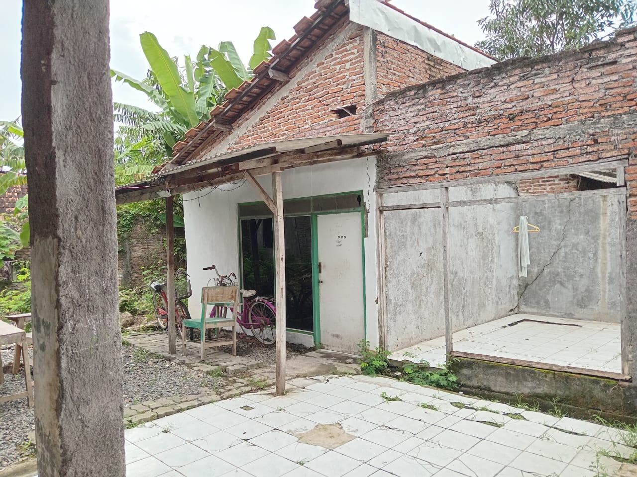 Saat kami survei di lokasi pondok terlihat fondasi yang belum tergarap (mangkrak lama), struktur besi tiang pancang yang mulai karatan, beberapa ruang yang berlumut, kosong, berlubang trocoh tertembus air hujan, mobil pemilik yang dongkrok dan situasi yang mengharukan lainnya.
